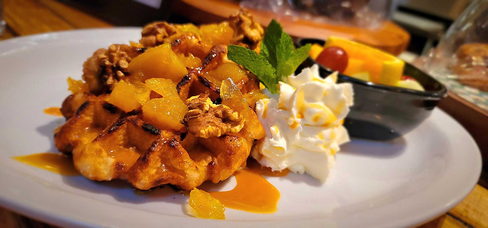 Peach Cobbler Waffles